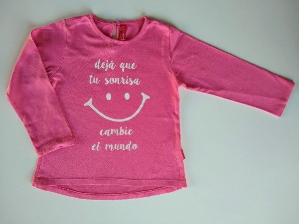 Remera de algodón manga larga con estampa al frente. Medidas: ancho de hombro 23 cm, largo de manga 34 cm, largo total 40 cm. USADO, buen estado