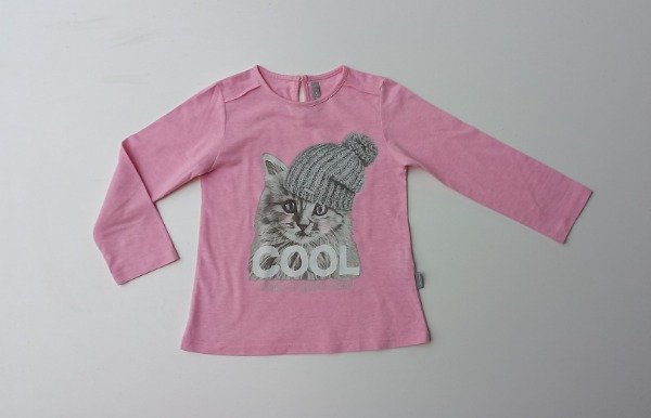Remera manga larga de algodón en color rosado con estampa al frente. Medidas: ancho de hombro 25,5 cm, largo de manga 37 cm, largo total 43,5 cm. COMO NUEVO