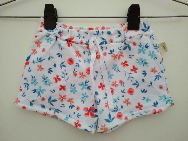 Short de algodón rústico con flores. Medidas: cintura 22 cm, largo 18 cm. USADO, buen estado