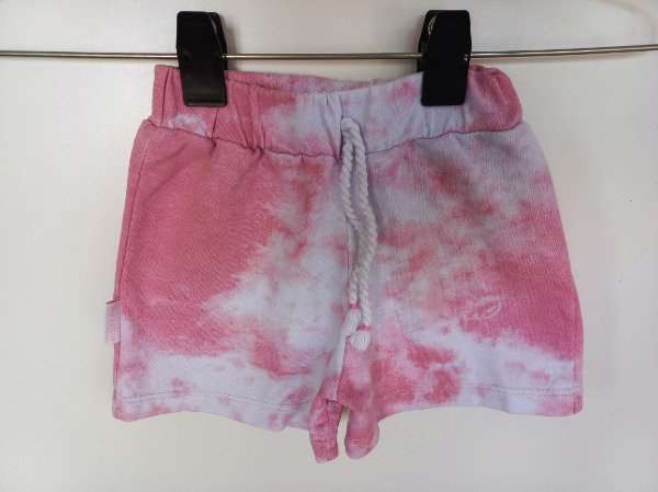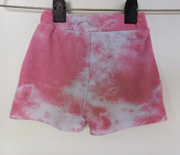 Short de algodón rústico estampado rosa y blanco. Medidas: cintura 21 cm, largo 22 cm. USADO, buen estado
