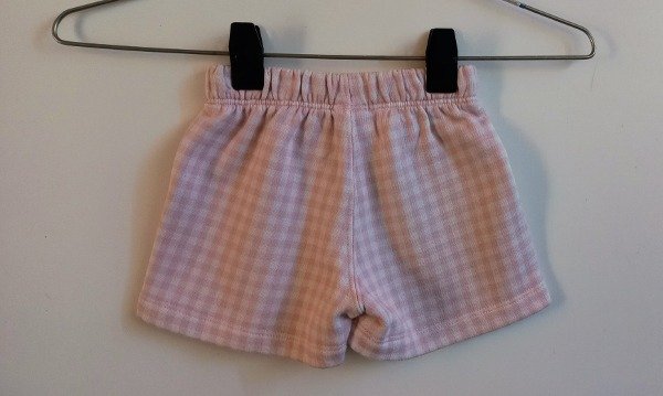 Short de algodón rústico a cuadritos rosado y blanco. Medidas: cintura 18,5 cm, largo 20 cm. USADO, buen estado