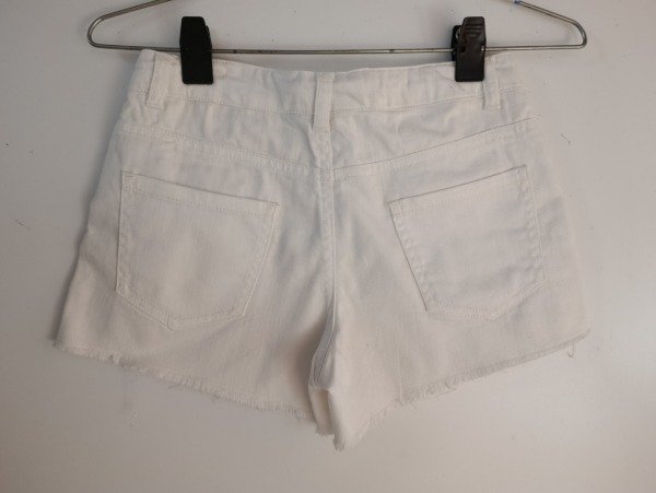 Short de gabardina en color blanco con bordado al frente . Tiene elástico y botón en la cintura para regular el calce. Medidas: cintura 31 cm, largo 24 cm. COMO NUEVO