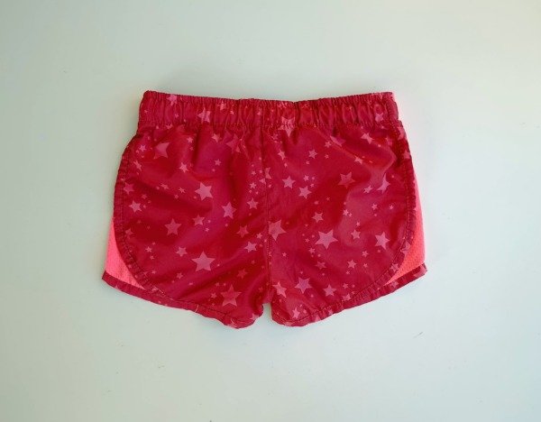 Short deportivo de tela de avion estampado bordó y rosa. Tiene elástico y cordón en la cintura. Medidas: cintura 28 cm, largo 22 cm. COMO NUEVO