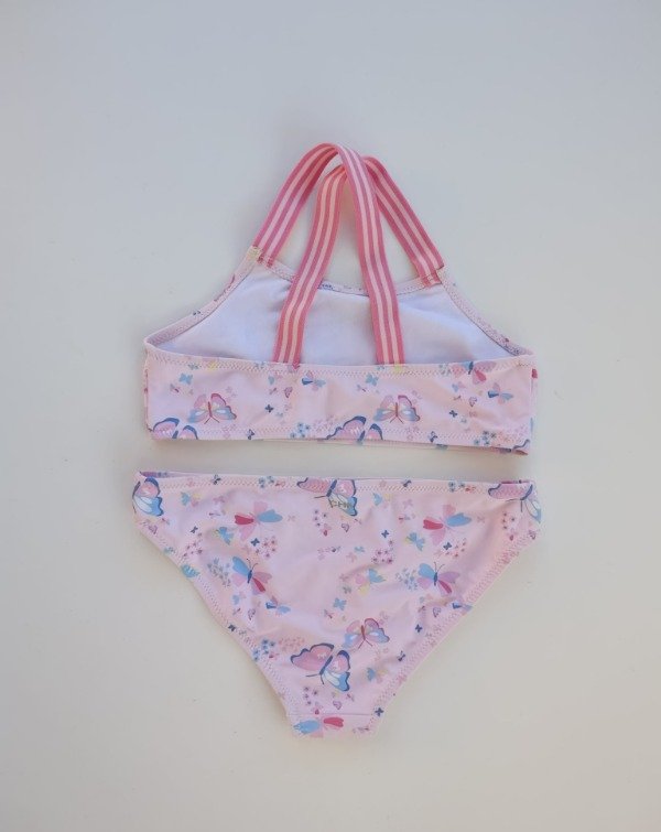 Bikini de lycra estampada, integramente forrada. Medidas: corpiño ancho 29 cm, alto 22 cm (breteles elastizados), bombacha: cintura 30 cm, alto 20 cm. COMO NUEVO