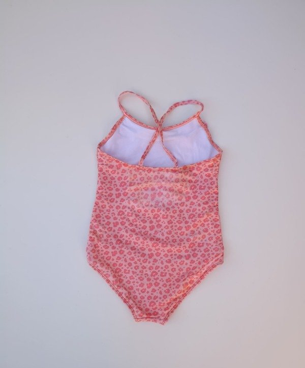 Malla enteriza de lycra estampado animal print color coral. Integramente forrada. Medidas: ancho de sisa a sisa 28 cm, largo total 53 cm. USADO