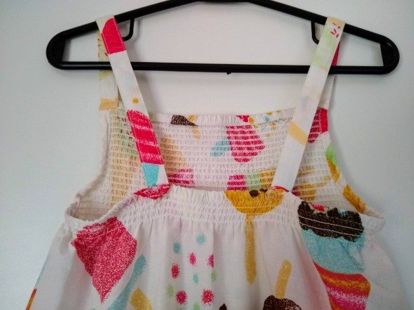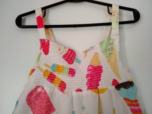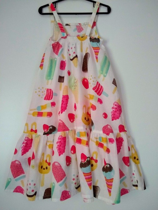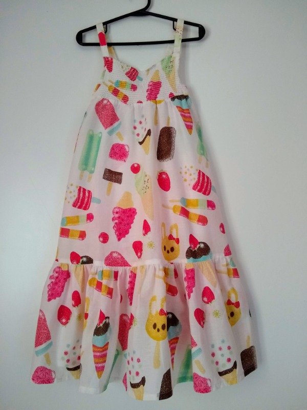 Solero de fibrana estapada, elastizado en la pechera. Talle 6-7 años. Largo total 77 cm. USADO, excelente estado