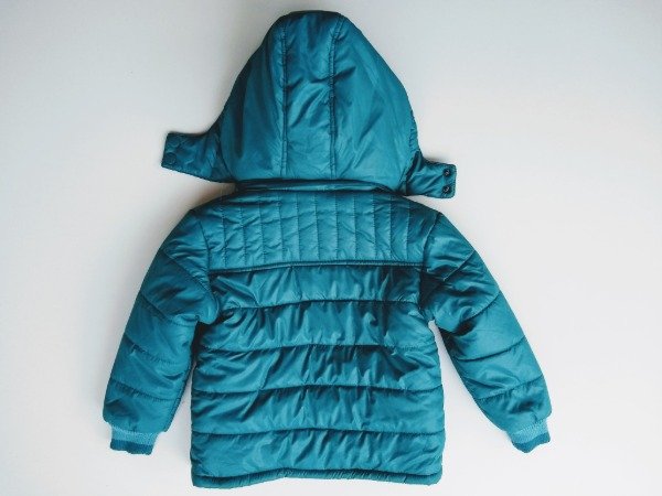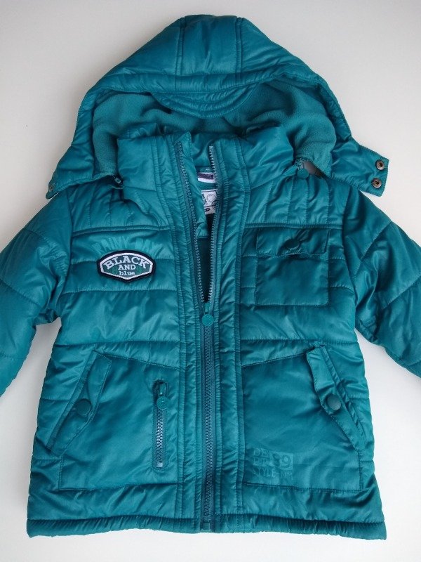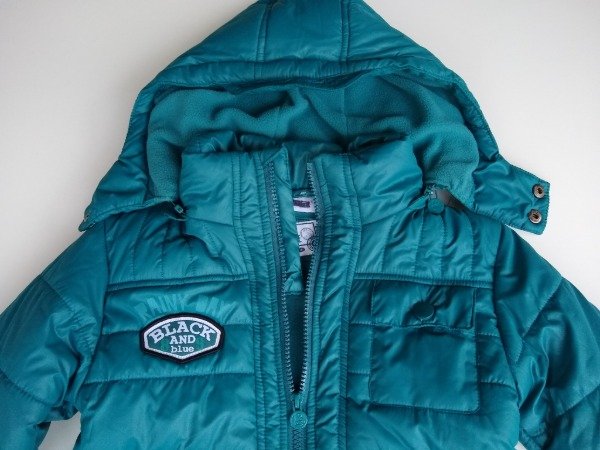 Campera de abrigo color azul petroleo. Tiene capucha desmontable y cuatro bolsillos en el frente con broches y cierres. Forrada en polar del mismo tono. Medidas: ancho de hombro 37 cm, largo de manga 38,5 cm, largo total 44 cm. COMO NUEVO