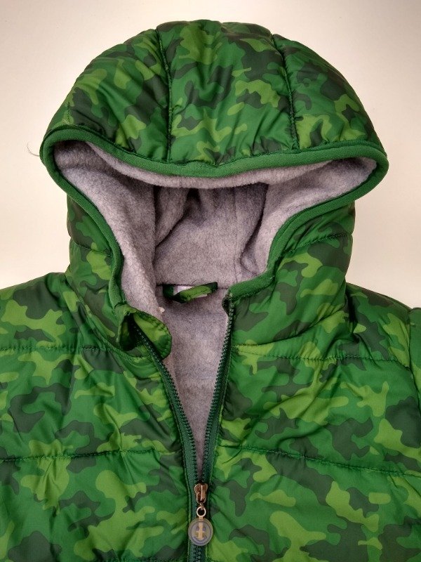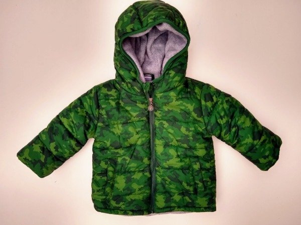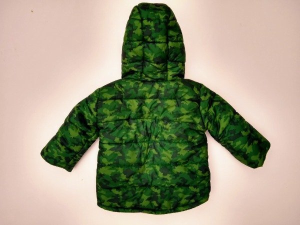 Campera de abrigo color verde camuflada. Integramente forrada en polar color gris.Talle 36 meses. Medidas: ancho de hombro 30 cm, largo de manga 28 cm, largo total 38 cm. COMO NUEVO