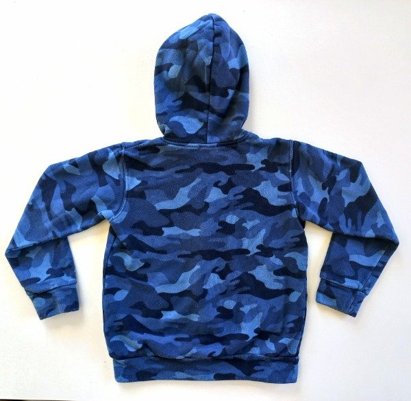 Campera de algodón con frisa en azul camuflado. Medidas: ancho de hombro 39 cm, largo de manga 50 cm, largo total 54 cm, USADO, buen estado
