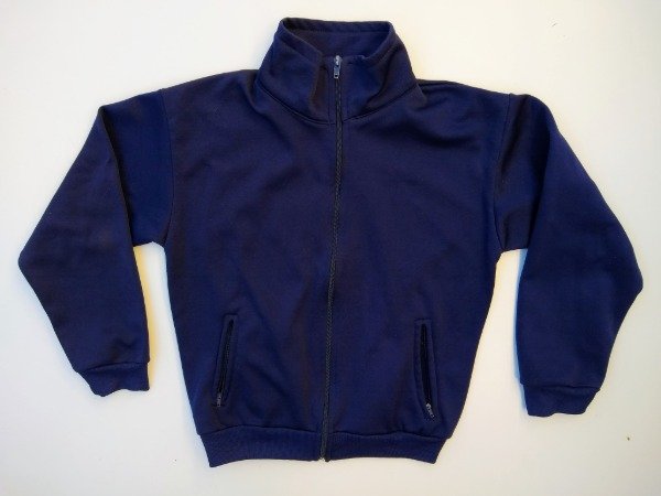 Campera de algodón tipo colegial. Tiene bolsillos con cierre en el frente. Medidas: ancho de hombro 43 cm, largo de manga 46 cm, largo total 53 cm. USADO, buen estado