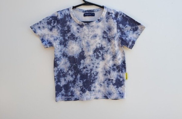Remera manga corta de algodón en color azul batik. Medidas: ancho de hombro 25 cm, largo 38,5 cm. USADO, buen estado