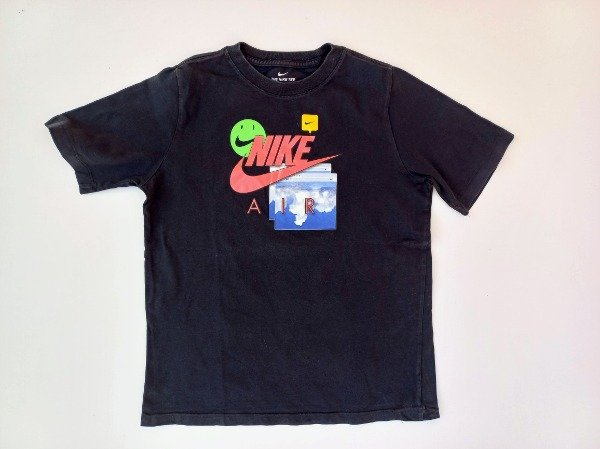 Remera manga corta de algodón en color negro con estampa al frente. Talle XL (13-15 años). Medidas: ancho de hombro 34 cm, largo 60 cm. COMO NUEVO