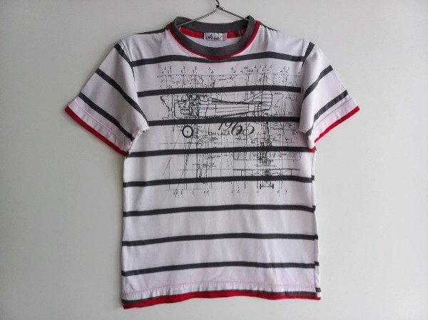 Remera manga corta de algodón rayado. Medidas: ancho de hombro 37 cm, largo 57 cm. USADO, buen estado