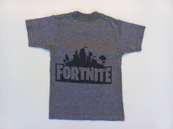 Remera manga corta de algodón en color gris con inscripciones en frente y espalda. Medidas: ancho de hombro 29 cm, largo 48 cm. USADO, excelente estado