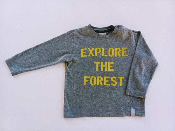 Remera manga larga de algodón color gris melange con inscripción al frente. Medidas: ancho de hombro 25 cm, largo de manga 32 cm, largo total 38,5 cm. USADO, buen estado