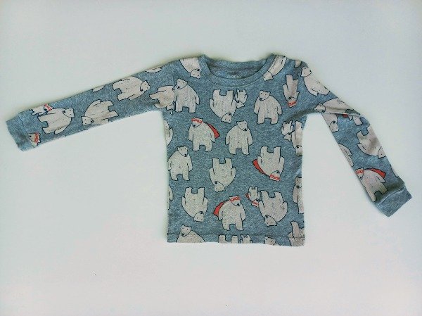 Remera manga larga de algodón estampado ositos. Medidas: ancho de hombro 29 cm, largo de manga 36 cm, largo total 38,5 cm. USADO, excelente estado
