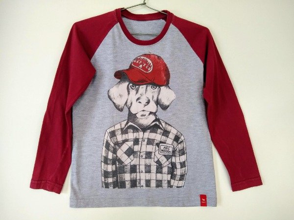 Remera manga larga de algodón color gris melange con mangas bordó. Medidas: ancho de hombro 41 cm, largo de manga 46 cm, largo total 58 cm. USADO, muy buen estado