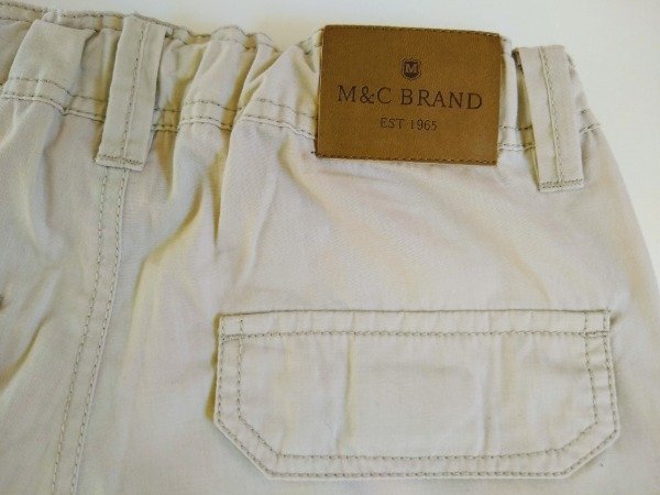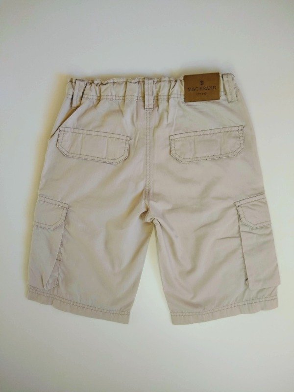 Bermuda de tela liviana tipo cargo. En el interior de cintura tiene elástico con ojal y botón para regular el calce. Medidas: cintura 31 cm, largo total 42 cm. USADO, excelente estado