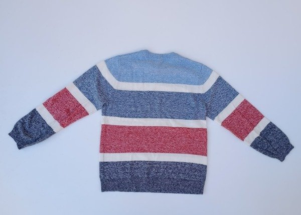 Sweater de hilo de algodón rayado. Medidas: ancho de hombro 31,5 cm, largo de manga 48,5 cm, largo total 53 cm. COMO NUEVO