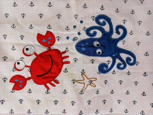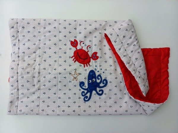 Acolchado para cuna funcional estampado marino. Medidas: 1,60 x 1,20. USADO, buen estado