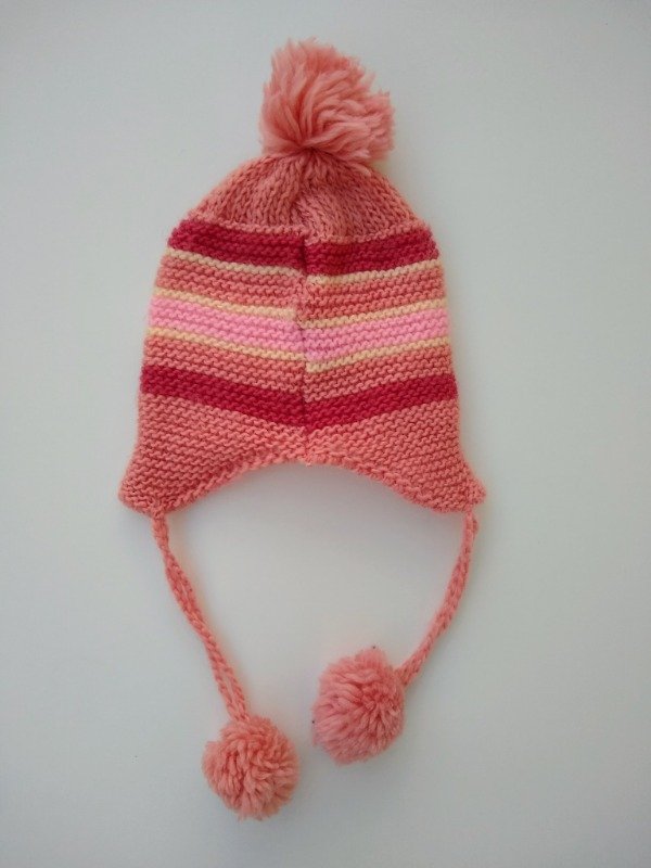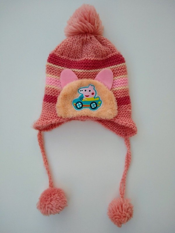 Gorra de lana tejida con tapaorejas y pompon Peppa Pig. Forrada en micropolar. COMO NUEVO