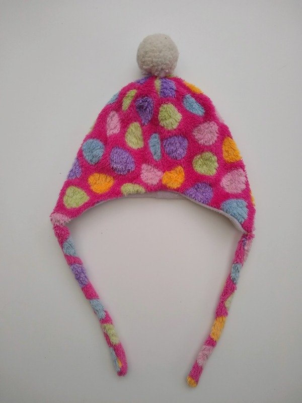 Gorra de peluche estampado, forrada interiormente en polar. Tiene tapaorejas y pompon.