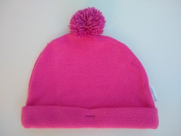 Gorra para bebe de polar con pompón color rosa. COMO NUEVO