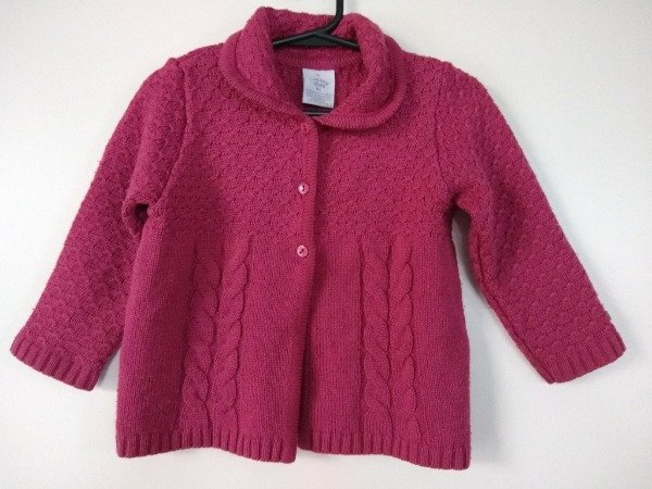 Saquito tejido con botones al frente. Talle XL (12-18 meses) Medidas: ancho hombros 23 cm, largo mangas 28 cm, largo total 34 cm. USADO