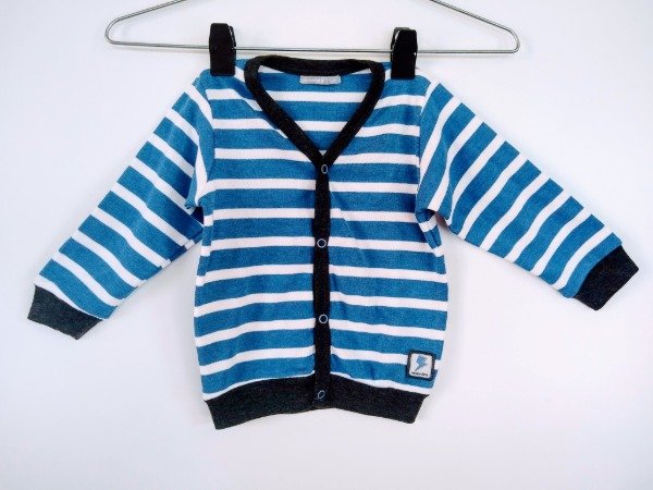 Cardigan en interlock 100 % algodon. Talle XXL (15-18 meses). Medidas: ancho de hombros 22 cm, largo de mangas 28 cm, largo total 36 cm. COMO NUEVO