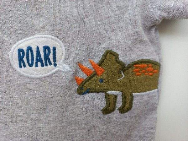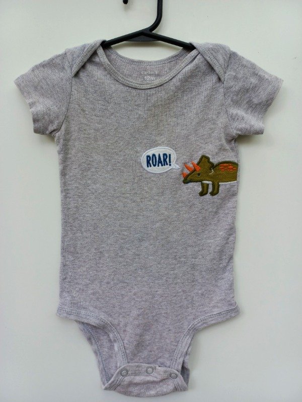 Body manga corta de algodón color gris melange con aplique. Medidas: ancho de hombro 21 cm, largo total 47 cm. USADO, buen estado