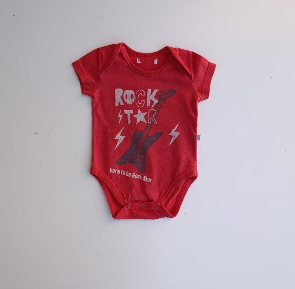 Body manga corta de algodón en color rojo con estampa al frente. Medidas: ancho de hombro 17 cm, largo 31,5 cm. USADO, buen esado