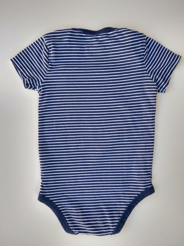 Body manga corta de algodón rayado azul y blanco. Medidas: ancho de hombro 21 cm, largo total 42 cm. NUEVO SIN ETIQUETA