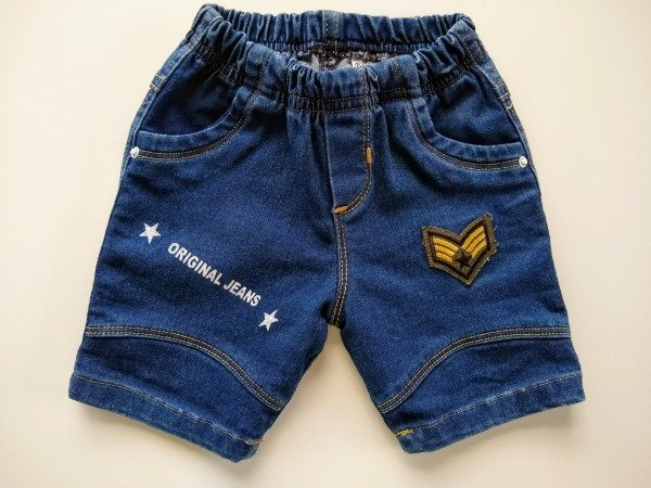 Bermuda de jean con spandex. Tiene elástico en la cintura. Talle 1. Medidas: cintura 19 cm, largo 22,5 cm. COMO NUEVO