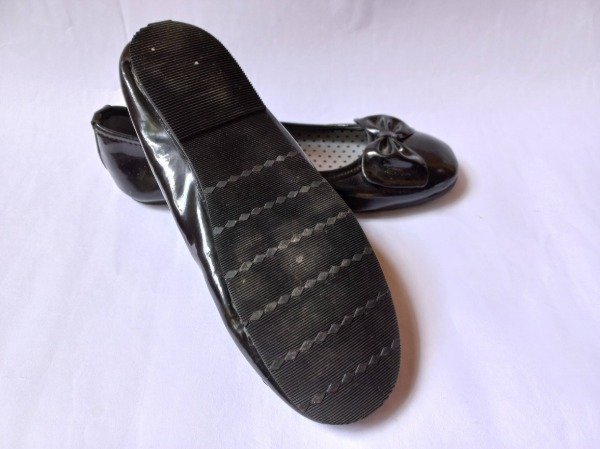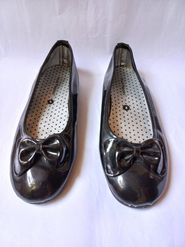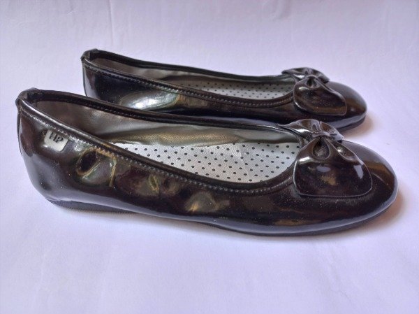 Balerinas de cuero sintetico color negro charol con detalle de moño. Plantilla interna 20,5 cm. COMO NUEVO