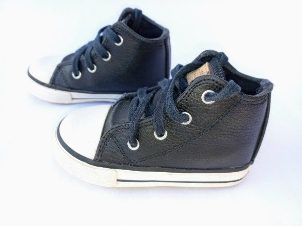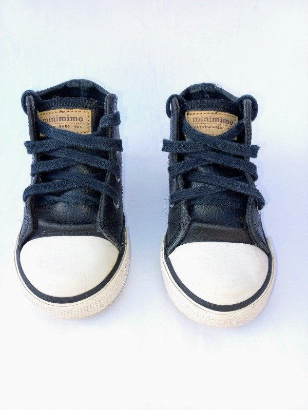 Botitas de cuero sintético acordonadas color negro. Plantilla interna 12,5 cm. USADO, excelente estado