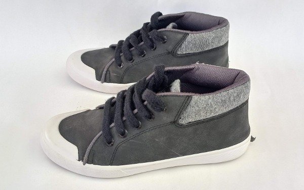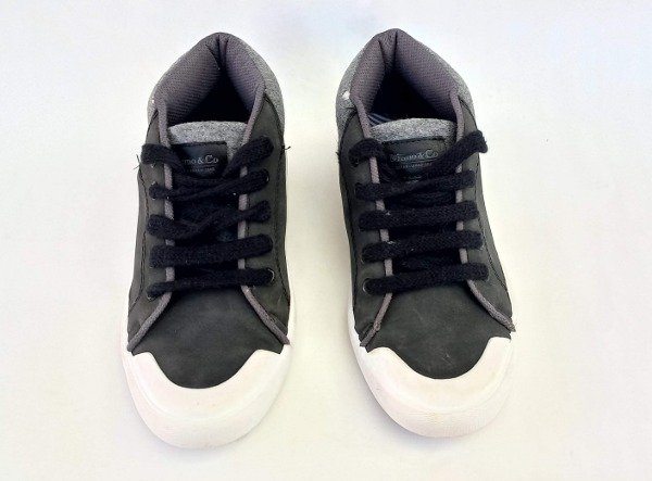 Botitas acordonadas de cuero sintético en color gris plomo. Plantilla interna 23 cm. USADO