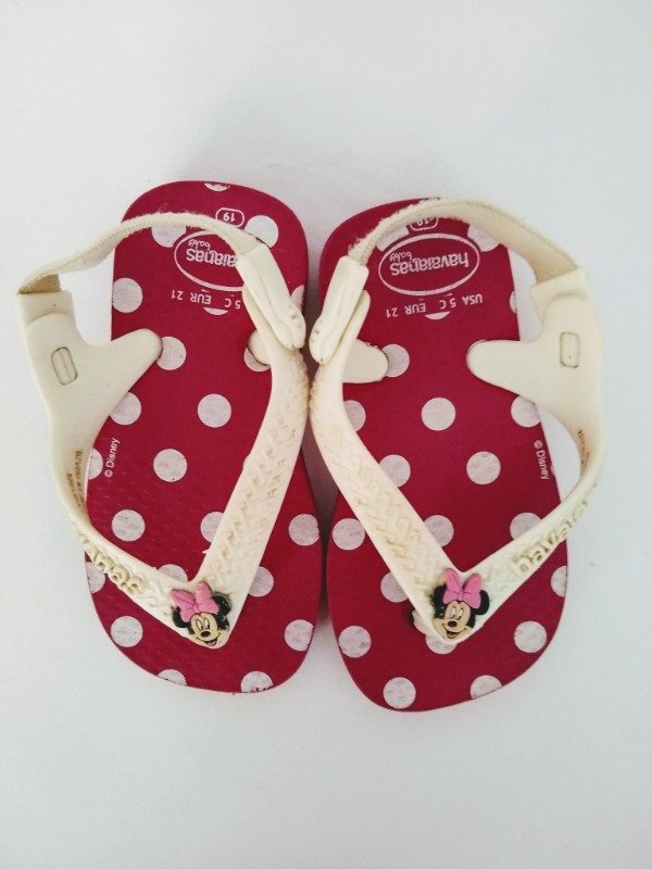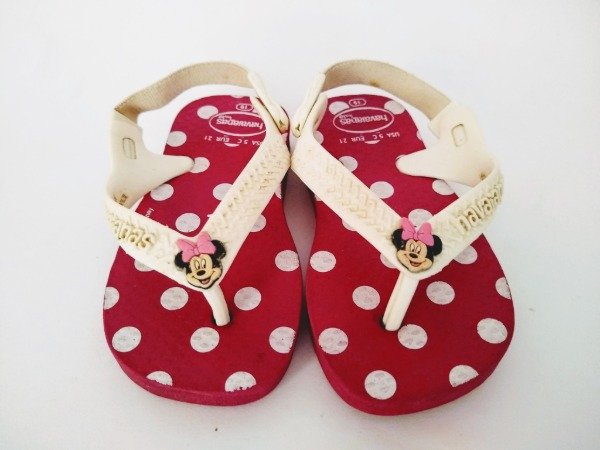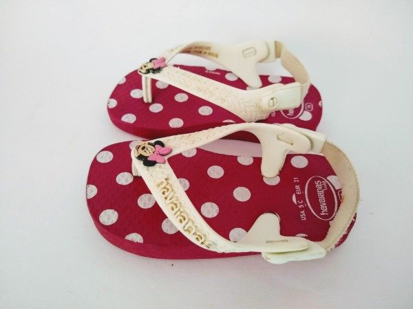 Ojotas color rosa con lunares "Minnie". Plantilla interna 12 cm. USADO