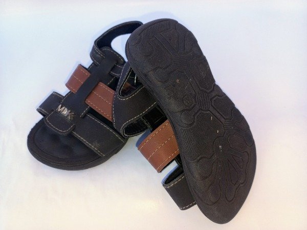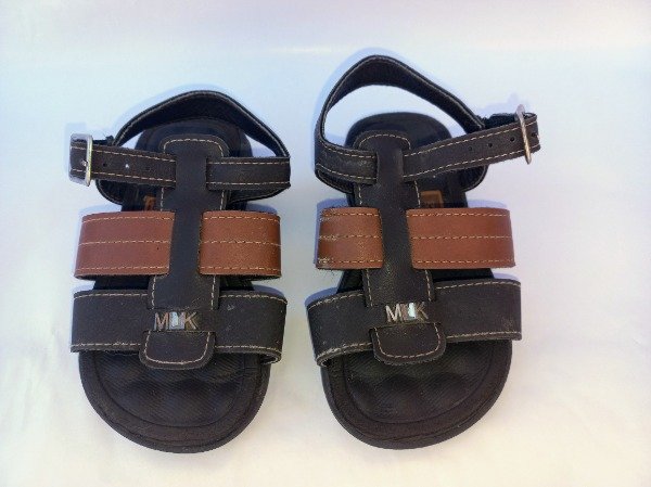 Sandalia color marrón combinada, tipo franciscana. Plantilla interna 14 cm. USADO, buen estado