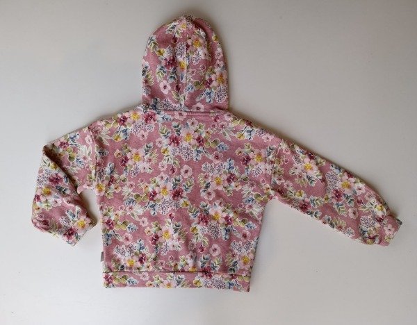 Campera de algodón con frisa estampada. Tiene capucha y bolsillos canguro. Medidas: ancho de hombro 49 cm, largo de manga 39 cm, largo total 47 cm. COMO NUEVO