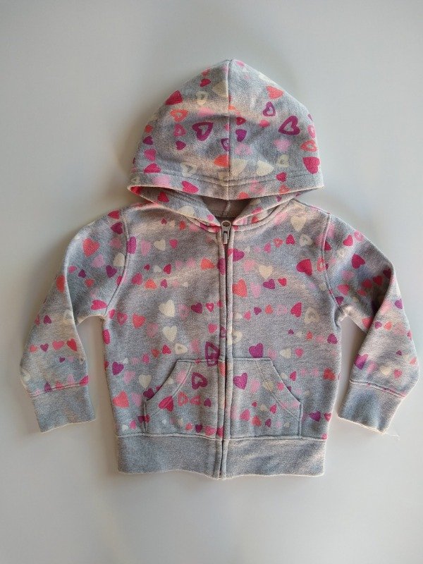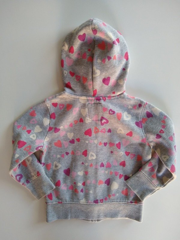 Campera con capucha y bolsillos canguro. Medidas: ancho de hombro 26 cm, largo manga 33 cm, largo total 35 cm. COMO NUEVO