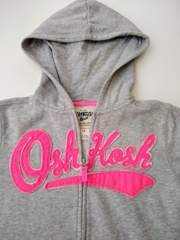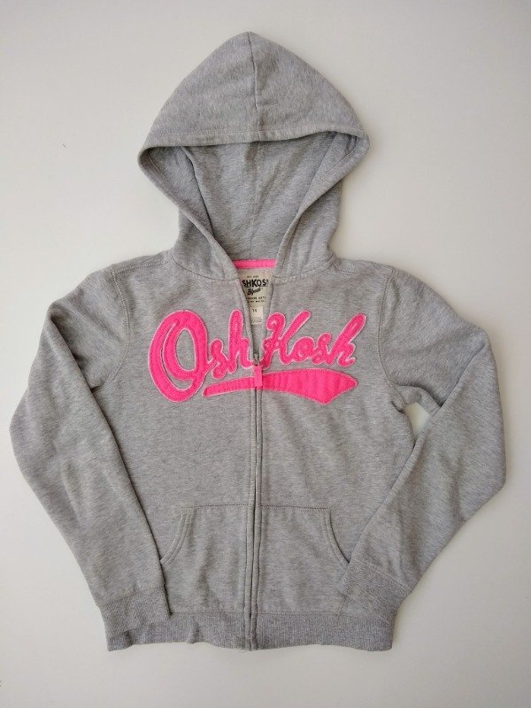 Campera de algodón con friza en color gris melange. Tiene capucha y bolsillos canguro. Medidas: ancho de hombro 36 cm, largo de manga 53 cm, largo total 52 cm. USADO, muy buen estado