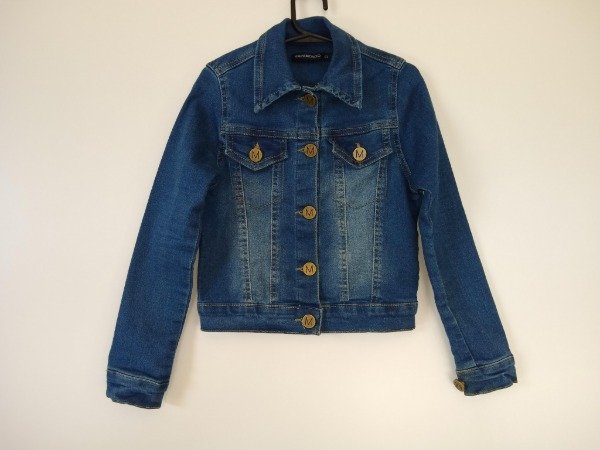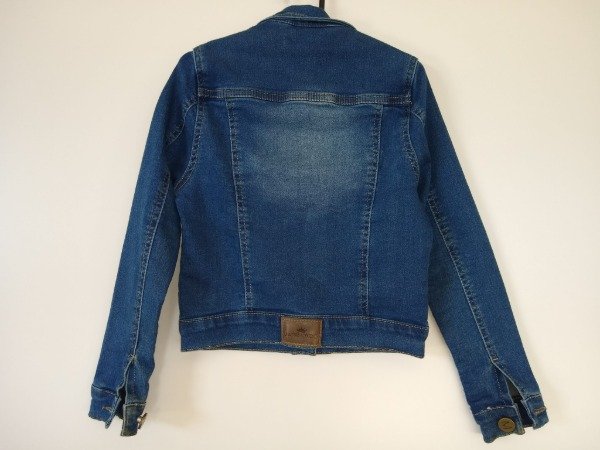 Campera de jean con spandex en color azul. Medidas: ancho de hombro 25 cm, largo de manga 44 cm, largo total 39,5 cm. COMO NUEVO