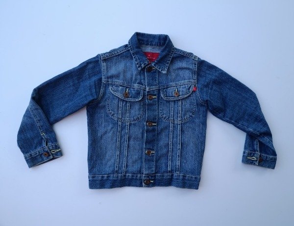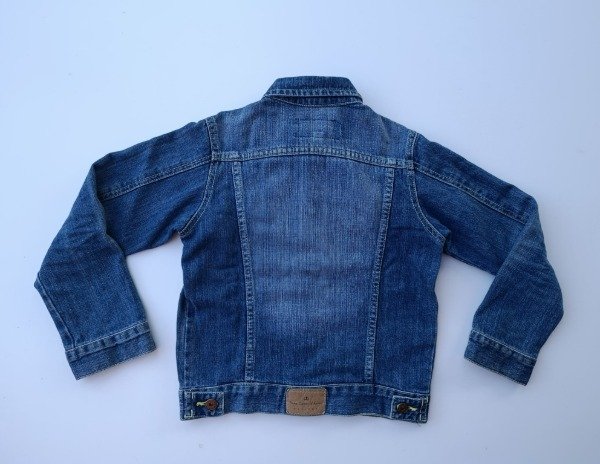 Campera de jean azul. Medidas: ancho de hombro 32 cm, largo de manga 47,5 cm, largo total 47,5 cm. USADO, buen estado