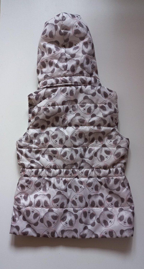 Chaleco de abrigo estampado ositos. Interior de polar. Tiene capucha desmontable con orejitas y elastizada la cintura. Talle 7-8 años. Medidas: ancho de sisa a sisa 37 cm, largo 46 cm. COMO NUEVO