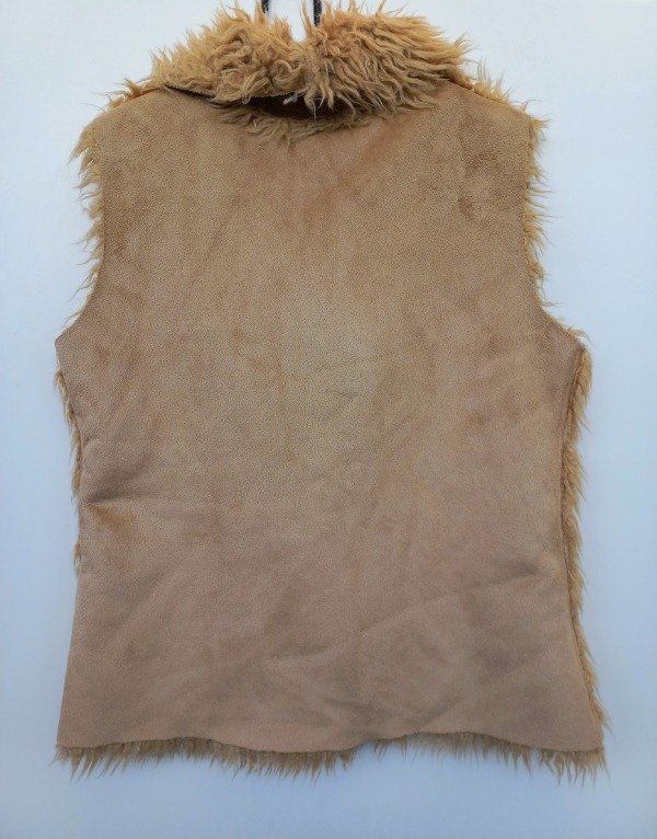 Chaleco de gamuza con corderito en su interior color nude. Medidas: ancho de sisa a sisa 46 cm, largo 52 cm. COMO NUEVO