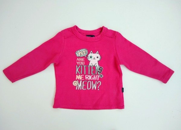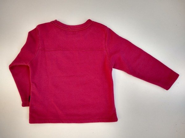 Buzo de algodón con friza color rosa con estampa al frente. Medidas: ancho de hombro 29 cm, largo de manga 38 cm, largo total 44 cm. USADO, buen estado