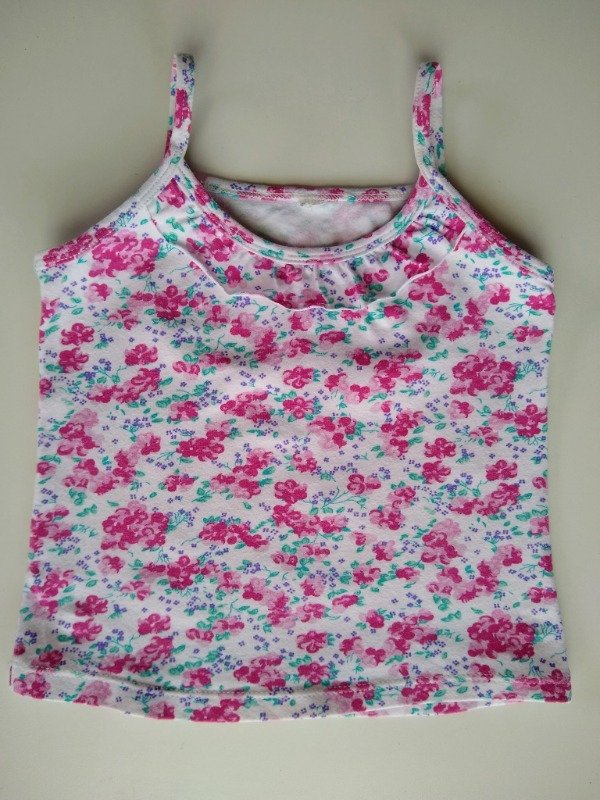 Remera básica estampada con detalle de volado al frente. Largo 31 cm. USADO