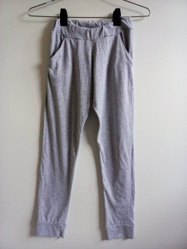 Babucha de algodón fino en color gris melange. Medidas: cintura 26,5 cm, largo 81 cm. USADO