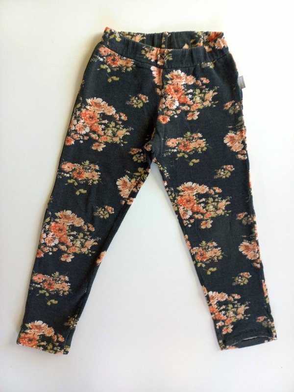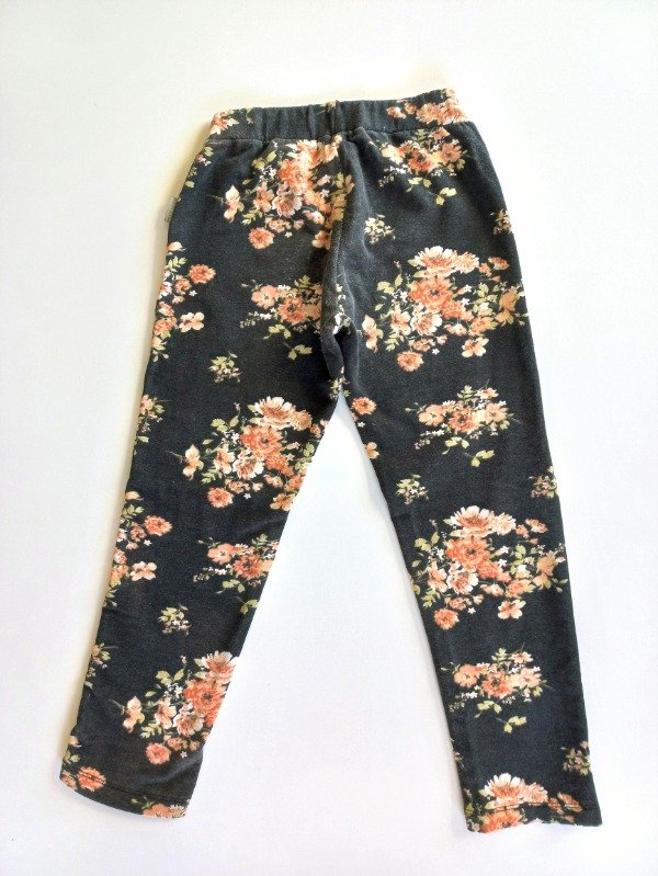 Calza de algodón con frisa color negro con flores. Medidas: cintura 25,5 cm, largo 67 cm. USADO