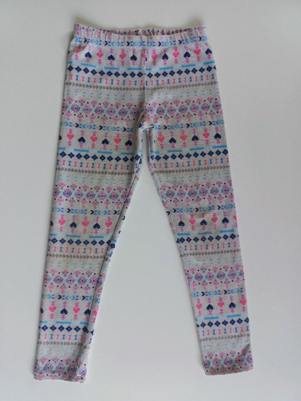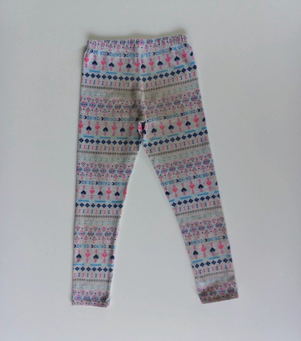 Calza de algodón con lycra estampada con brillos. Medidas: cintura 26 cm, largo 70 cm. USADO, buen estado